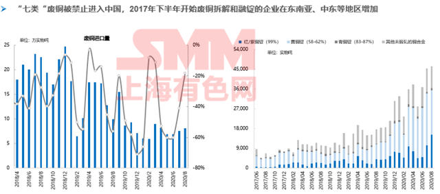 全球化疫情和中國固廢進口政策調整,進口廢銅影響極大,1-8月中國進口廢銅減近50萬噸