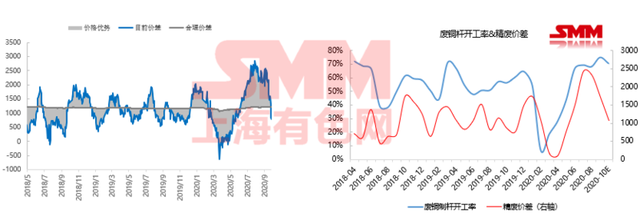 隨著四季度精廢價差修復至千元附近,銅消費有望環比改善。