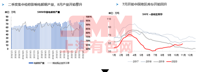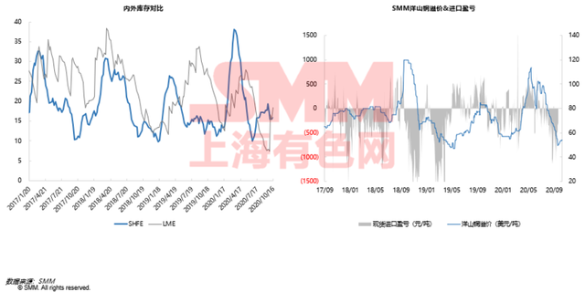 三季度原料問題逐漸緩解,國內消費開始走弱,疊加進口銅大量進口,國內總庫存出現明顯回升。