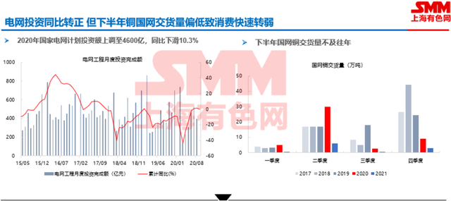 二季度國網交貨量集中,推動電力消費迅速轉好,是4月開始銅消費表現超預期的重要原因,同樣也拖累下半年銅消費。